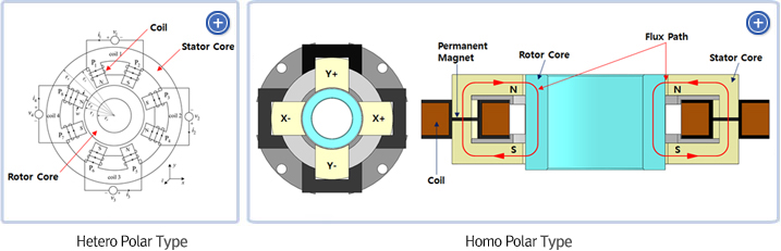 • The radial magnetic bearings is largely divided into Hetero polar type and Homo polar type.